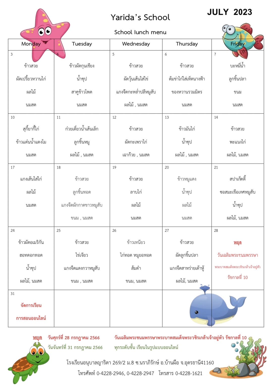 เมนูอาหาร เดือน กรกฏาคม 2566