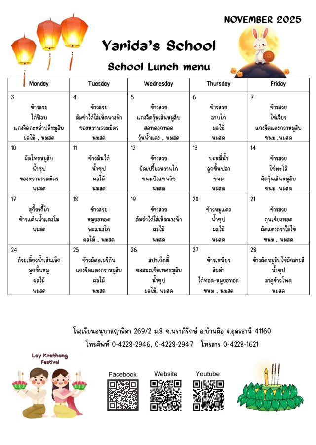 เมนูอาหาร เดือน พฤศจิกายน 2568