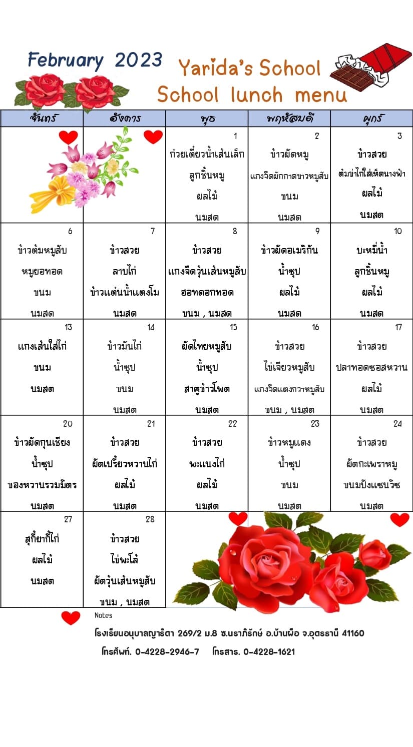 เมนูอาหาร เดือน กุมภาพันธ์ 2566
