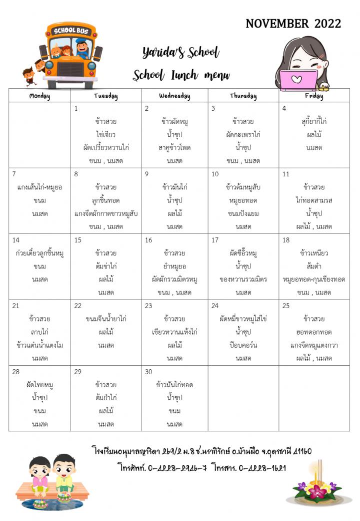 เมนูอาหาร เดือน พฤศจิกายน 2565