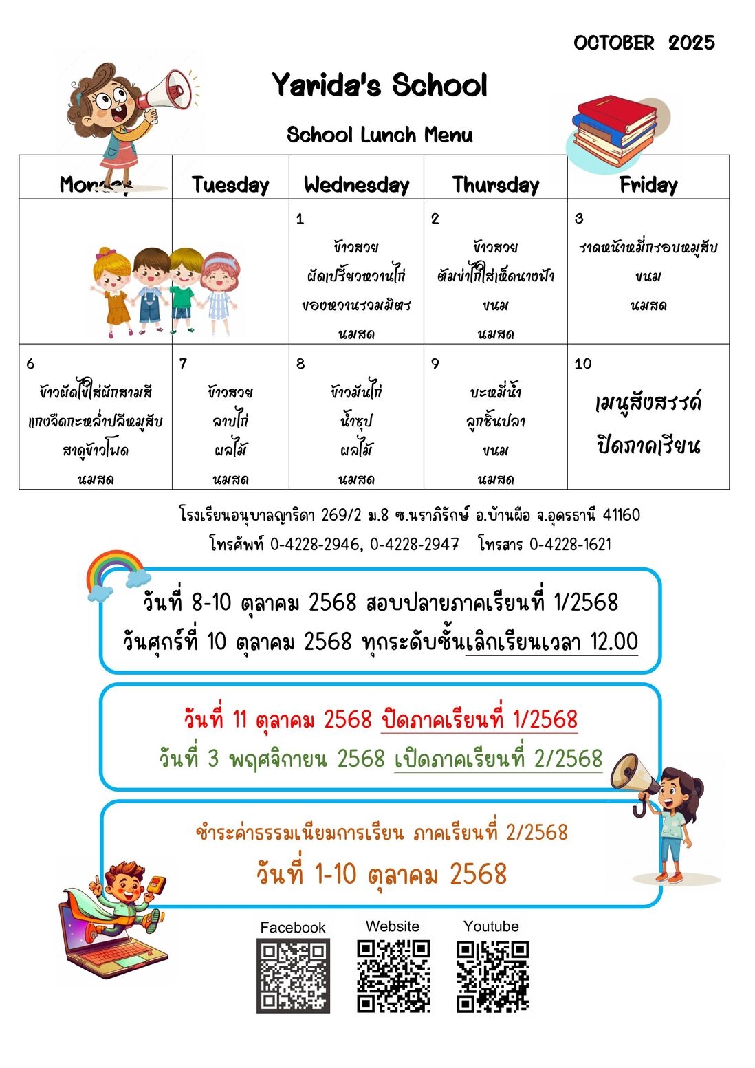 เมนูอาหาร เดือน ตุลาคม 2568