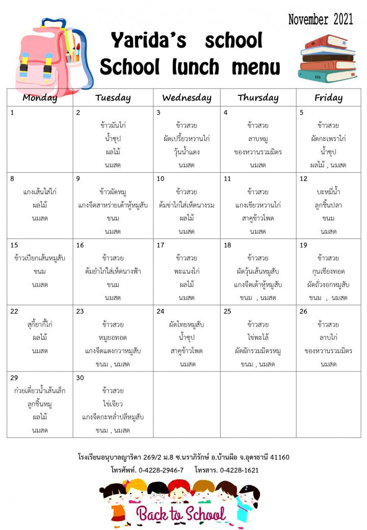 เมนูอาหาร เดือน พฤศจิกายน 2564