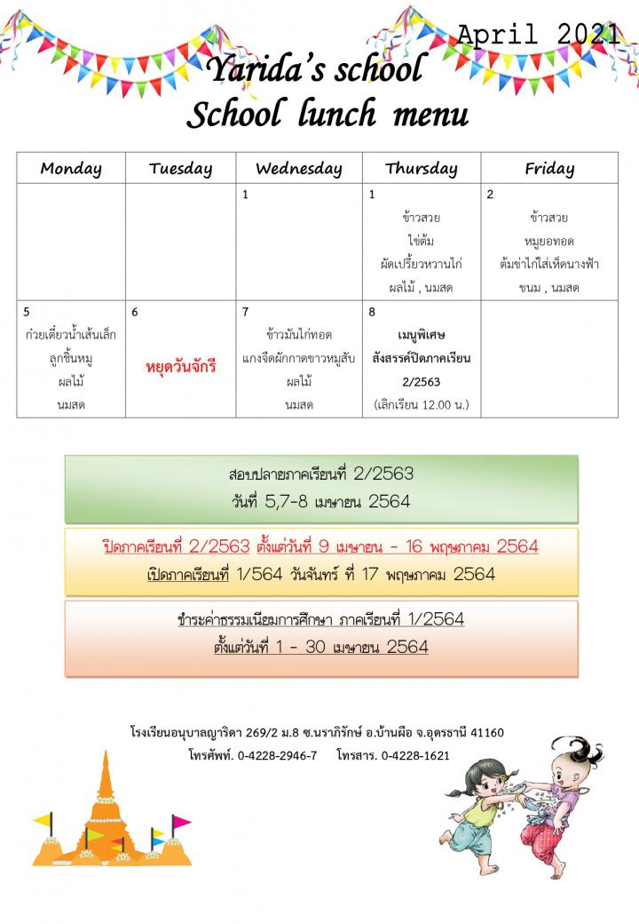 เมนูอาหาร เดือน เมษายน 2564