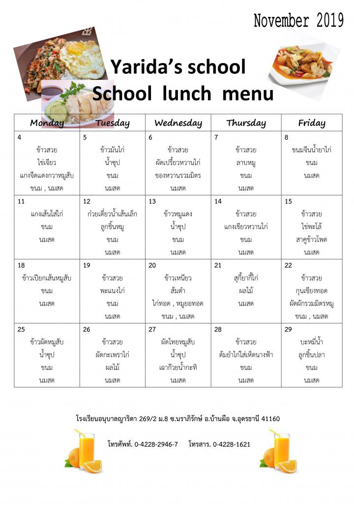 เมนูอาหาร เดือนพฤศจิกายน 2562