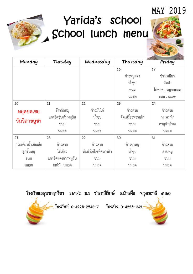 เมนูอาหาร เดือนพฤษภาคม 2562