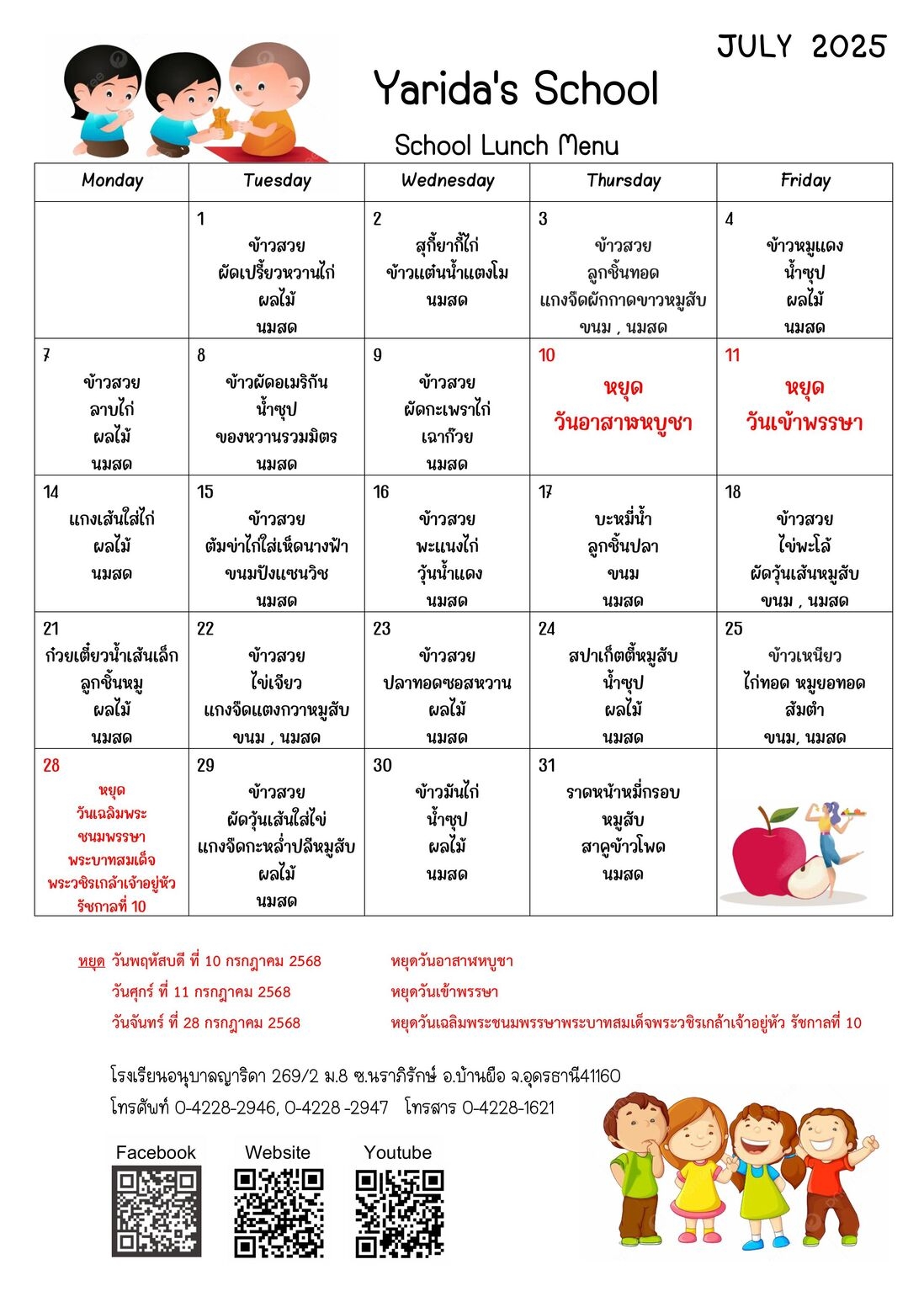 เมนูอาหาร เดือน กรกฎาคม 2568