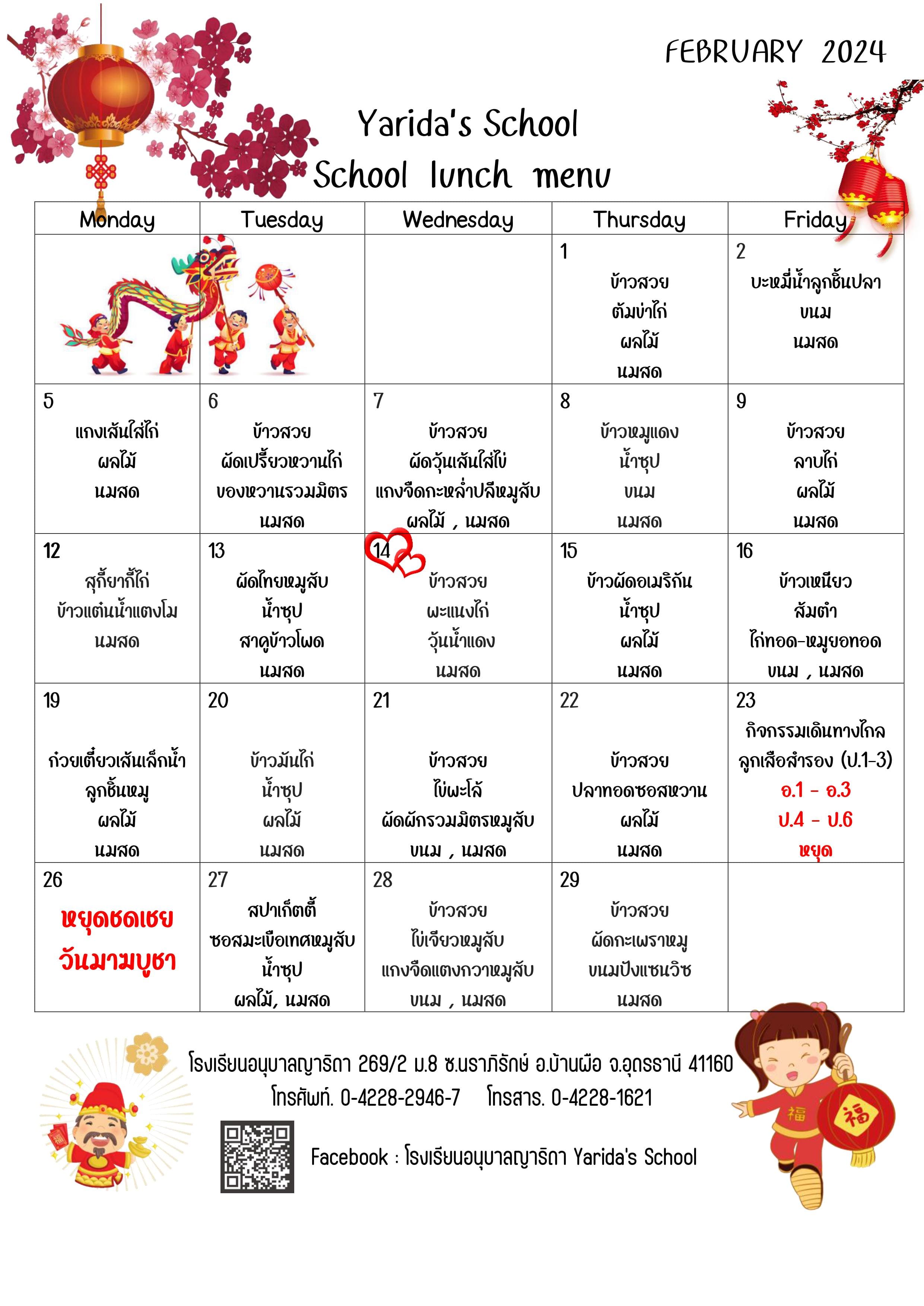 เมนูอาหาร เดือน กุมภาพันธ์ 2567