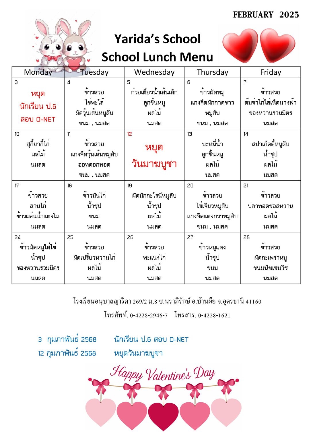 เมนูอาหาร เดือน กุมภาพันธ์ 2568