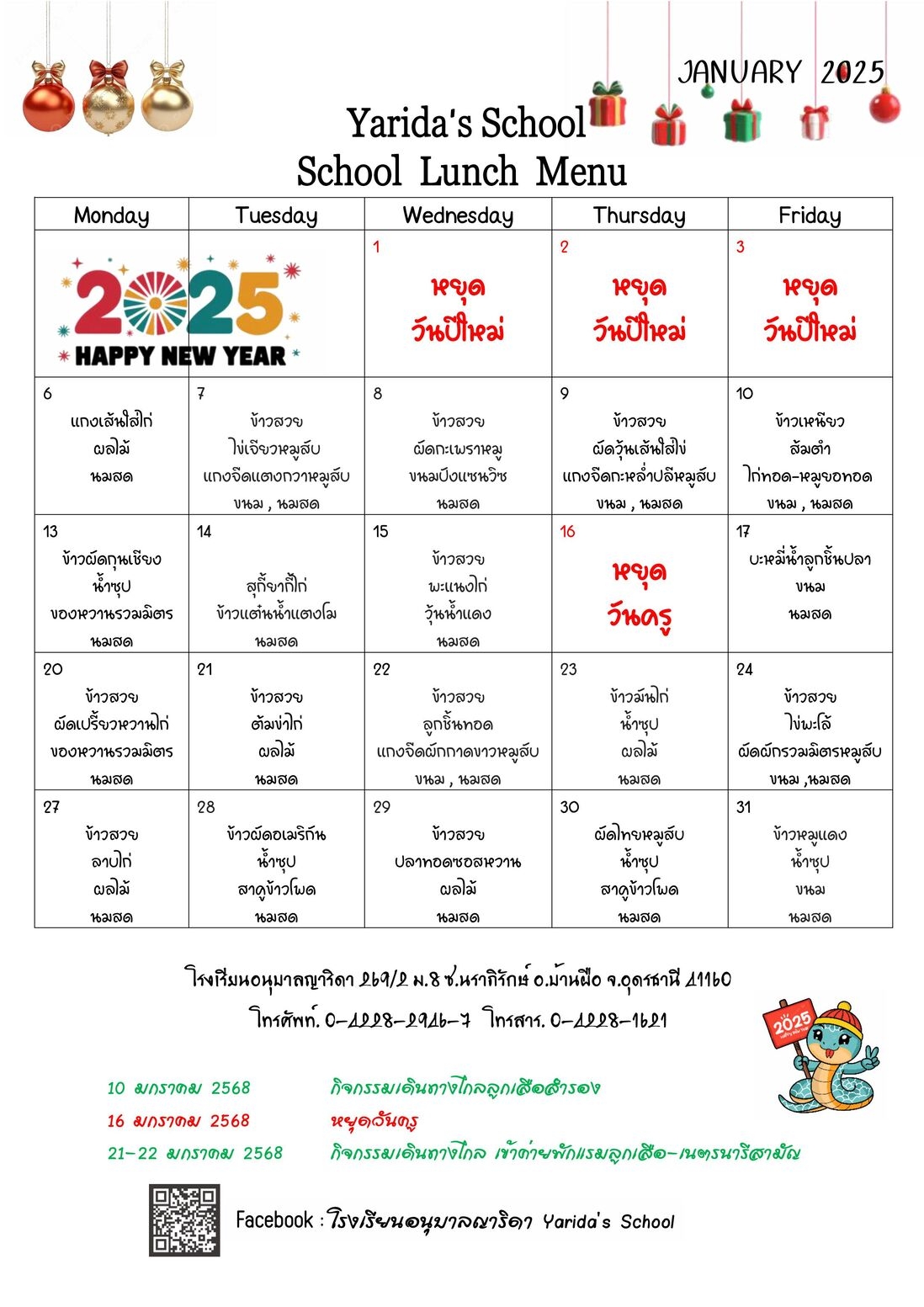 เมนูอาหาร เดือน มกราคม 2568
