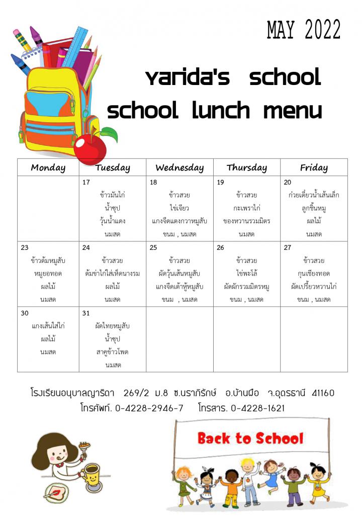 เมนูอาหาร เดือน พฤษภาคม 2565
