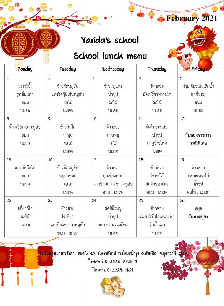 เมนูอาหาร เดือน กุมภาพันธ์ 2564