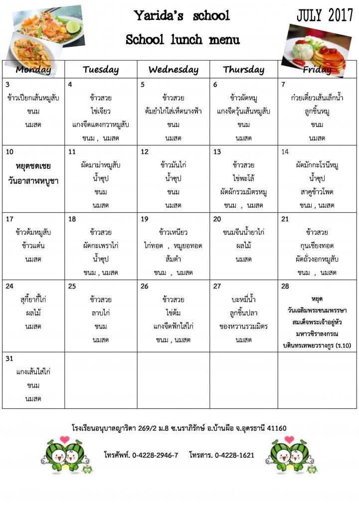 เมนูอาหาร เดือนกรกฎาคม 2560