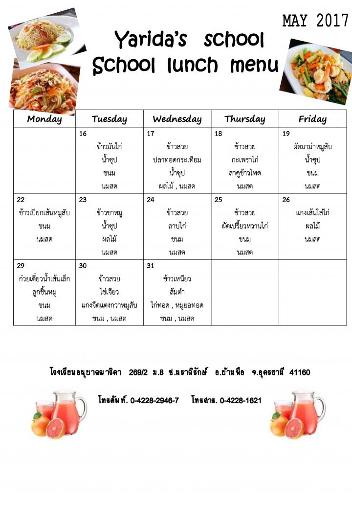 เมนูอาหาร เดือนพฤษภาคม 2560