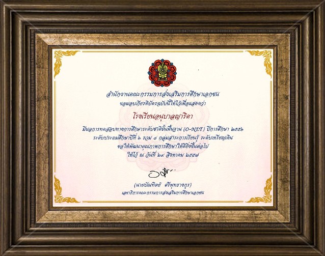 เกียรติบัตรการมีผลการทดสอบทางการศึกษาระดับชาติขั้นพื้นฐาน (O-NET) ปีการศึกษา 2556 ระดับประถม 6
