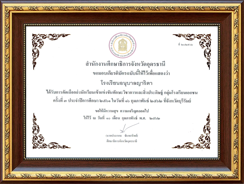 เกียรติได้รับคัดเลือกส่งนักเรียนเข้าแข่งขันทักษะวิชาการและสิ่งประดิษฐ์ กลุ่มโรงเรียนเอกชน ปี 2562
