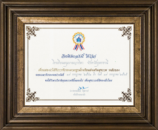 เกียรติบัตรโรงเรียนส่งเสริมสุขภาพระดับทอง ปี 2562
