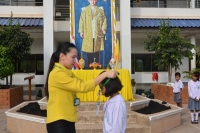 4 ธ.ค. 57ผู้บริหาร คณะครูบุคลากร และนักเรียนทุกคนร่วมพิธีถวายพระพรเนื่องในวันพ่อแห่งชาติ