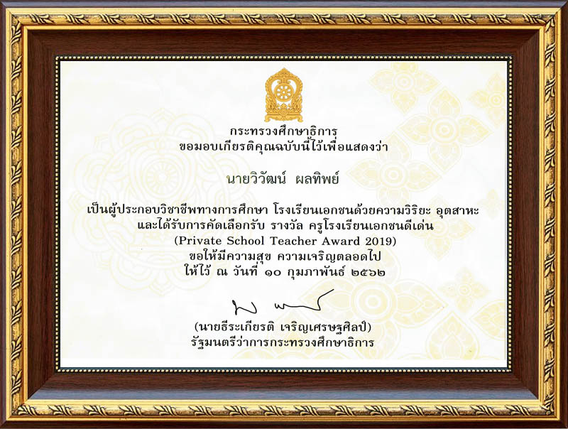 ชื่อผลงาน : รางวัลครูโรงเรียนเอกชนดีเด่น พ.ศ. ๒๕๖๒
