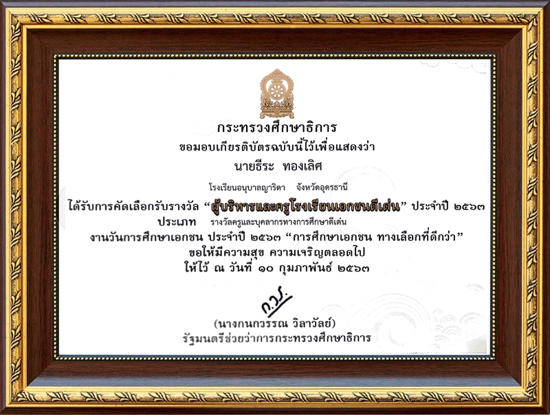 ชื่อผลงาน : ได้รับรางวัล "ผู้บริหารและครูโรงเรียนเอกชนดีเด่น" ประจำปี 2563 ประเภท รางวันครูและบุคลากรทางการศึกษาดีเด่น ผู้รับรางวัล : นายธีระ ทองเลิศ ตำแหน่ง : ครูผู้สอน หน่วยงานที่รับผิดชอบ : กระทรวงศึกษาธิการ ปีการศึกษาที่ได้รับ : 2563 |