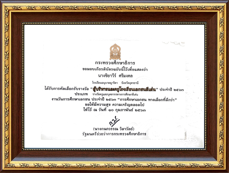 ชื่อผลงาน : ได้รับรางวัล "ผู้บริหารและครูโรงเรียนเอกชนดีเด่น" ประจำปี 2563