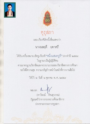 ชื่อผลงาน : รางวัลหนึ่งแสนครูดี ปี พ.ศ.๒๕๕๘