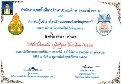 ชื่อผลงาน : รางวัลครูดีศรีอุดร ปี พ.ศ. ๒๕๕๗