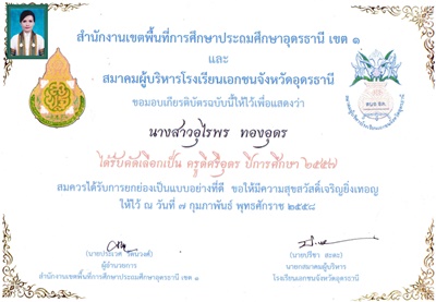 ชื่อผลงาน : รางวัลครูดีศรีอุดร ปี พ.ศ. ๒๕๕๗