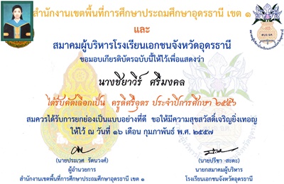 ชื่อผลงาน : รางวัลครูดีศรีอุดร ปี พ.ศ. ๒๕๕๖