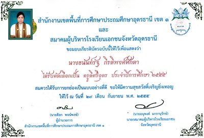 ชื่อผลงาน : รางวัลครูดีศรีอุดร ปี พ.ศ. ๒๕๕๕