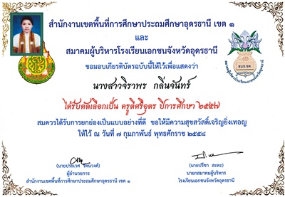 ชื่อผลงาน : รางวัลครูดีศรีอุดร ปี พ.ศ. ๒๕๕๗