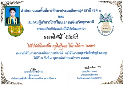 ชื่อผลงาน : รางวัลครูดีศรีอุดร ปี พ.ศ. ๒๕๕๗
