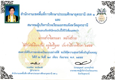 ชื่อผลงาน : รางวัลครูดีศรีอุดร ปี พ.ศ. ๒๕๕๕